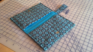 I made this diaper clutch for my daughter in law following a tutorial by Shannon at Sewing Barefoot. It was easy to make. I started with a piece of fabric quilted with batting and muslin (on my long arm) and then cut to the size mentioned in the directions. Installing the magnetic clasp was a breeze. I had enough fabric for two clutches so I have one on hand to give away.